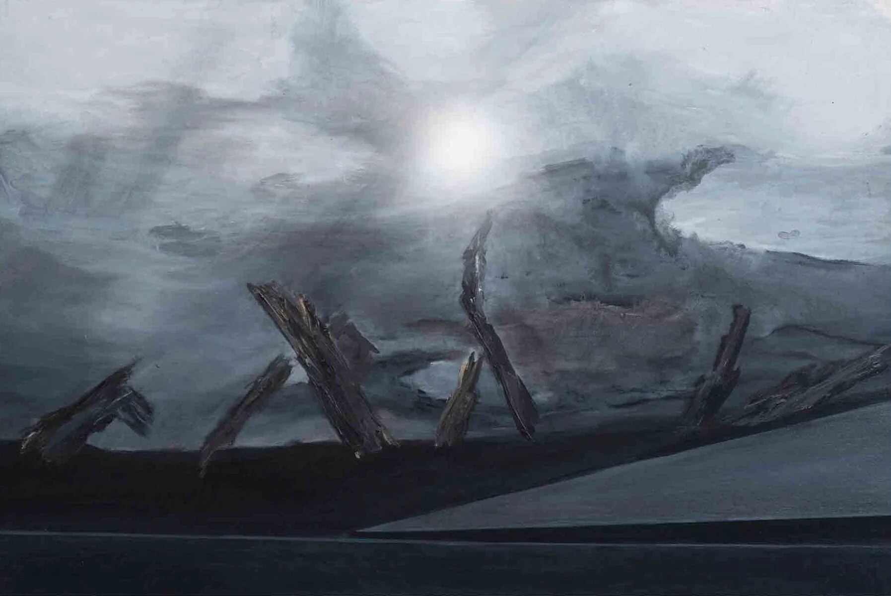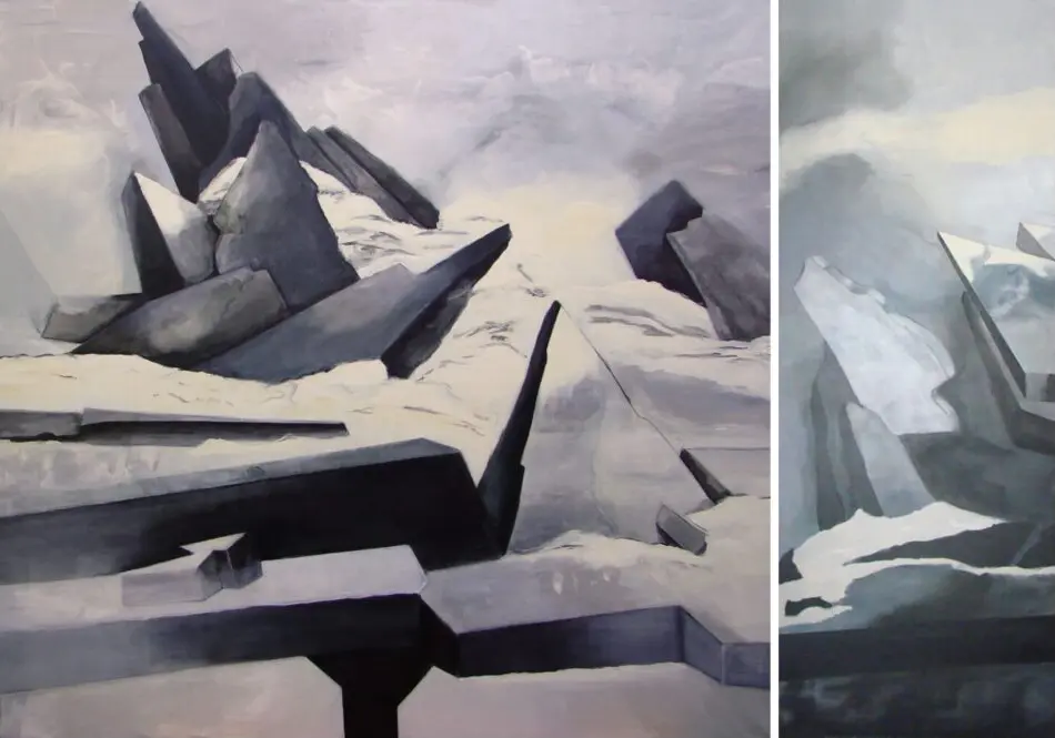 El confín irrumpe en mi pintura de un modo persistente, nunca se completa, nunca cesa de plasmarse, de atraparse.